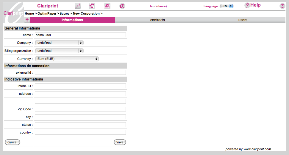 - external Id : unique identifier representing the buyer during the inter-application. This code should contain only numbers and letters, and must be unique.