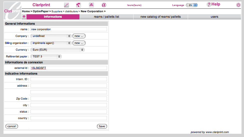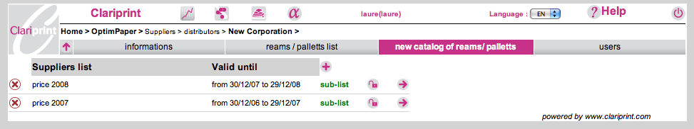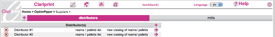 Access to the management of distributors via the menu "Suppliers" and "pop-up menu Distributors."