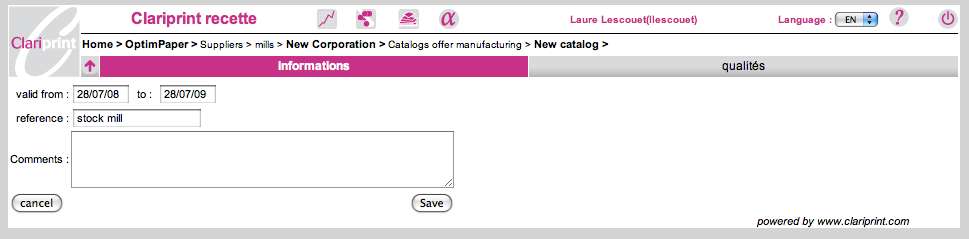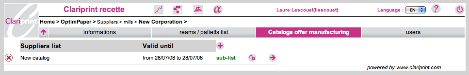 - The catalogues stocks : close to a catalogue distributor, presents paper size available from stock.