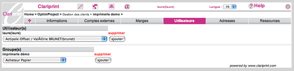 De façon épisodique, il est possible de donner accès à l'utilisateur imprimeur pour qu'il effectue des tests de devis.