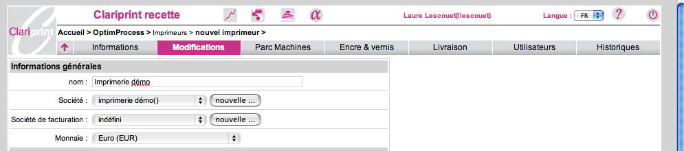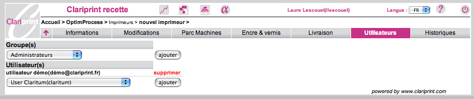 - Vérifier que le nom de l'imprimeur figure bien dans la liste.