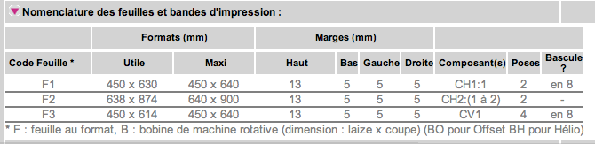 # Le code feuille précise par exemple que sur la feuille F1 est imposé le cahier CH1:1 en 2 poses en bascule in 8.