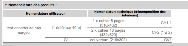 - 2/ La nomenclature technique qui est définie par Clariprint. "Technique" car elle est en rapport avec le processus de fabrication.