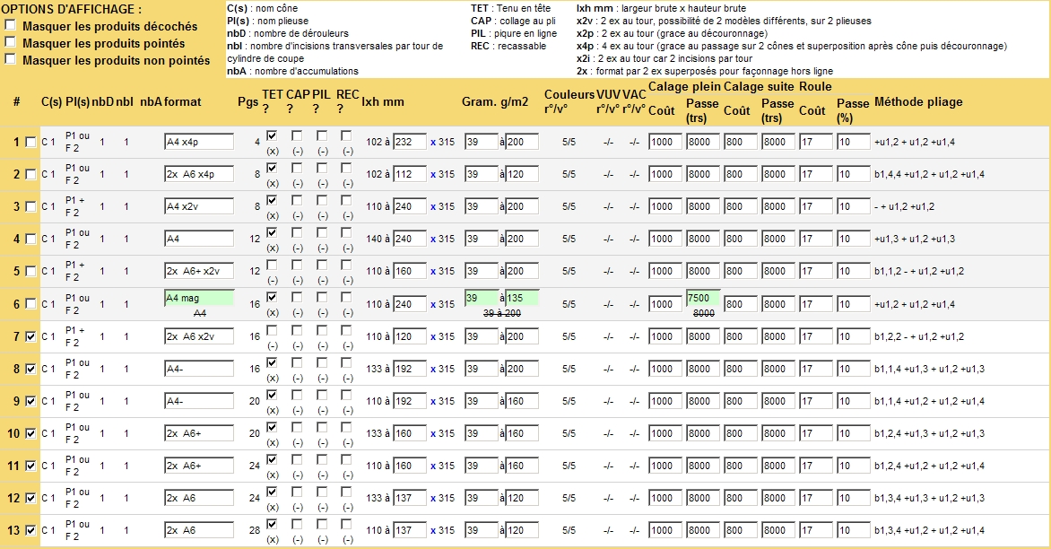 Exemple exemple de paramétrage d'une rotative 16 pages coupe 63 avec 2 plieuses :